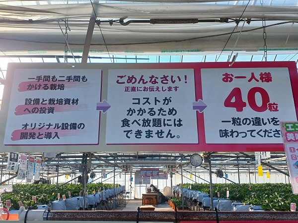 食べ放題を期待されるお客様は、他のイチゴ園をご利用ください。