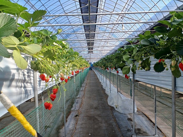 写真2.順路1の章姫。6棟のハウスの中心は、大粒のイチゴが有ります。