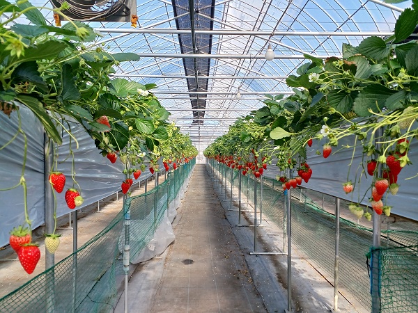 写真2.順路2のかおり野・紅ほっぺ・ホワイトベリー。遅い夜冷処理の紅ほっぺと