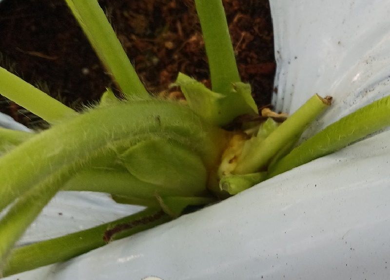 さらに、病害虫対策で、粘着くんが、葉の裏に沢山かかるように葉欠きします。