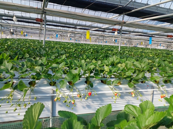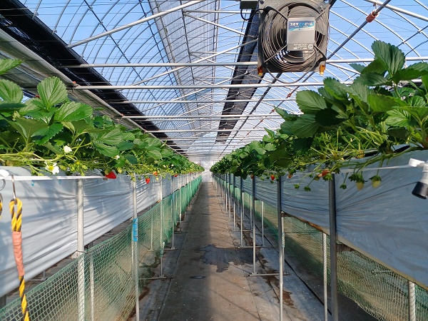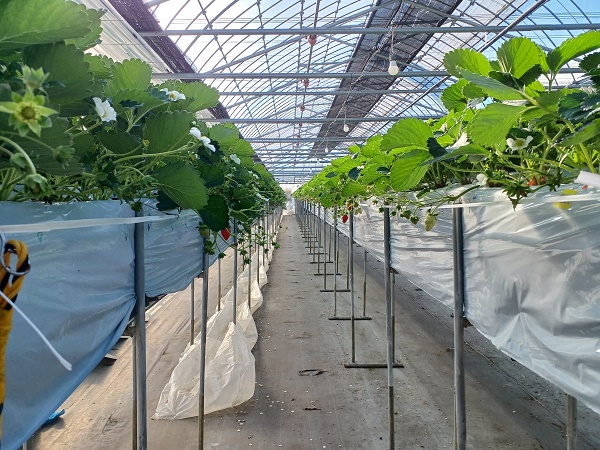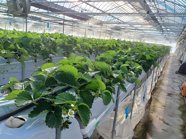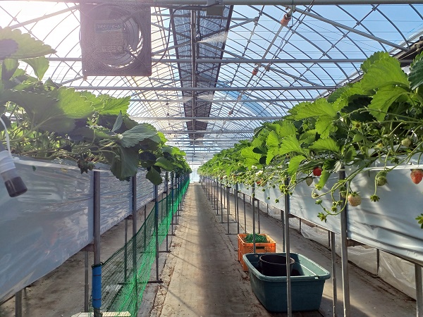 (6)館長の栽培技術とオリジナル設備のお陰で、12月から安全で甘いイチゴが食べられる。