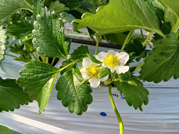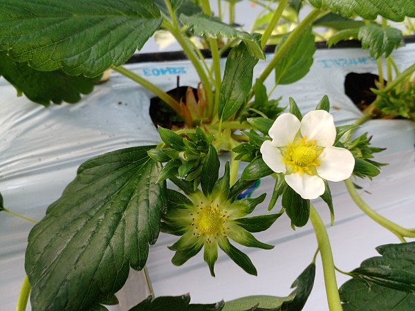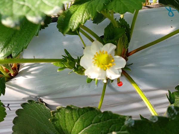 写真3.順路2のかおり野・紅ほっぺ・ホワイトベリー。かおりが少し赤くなっています。