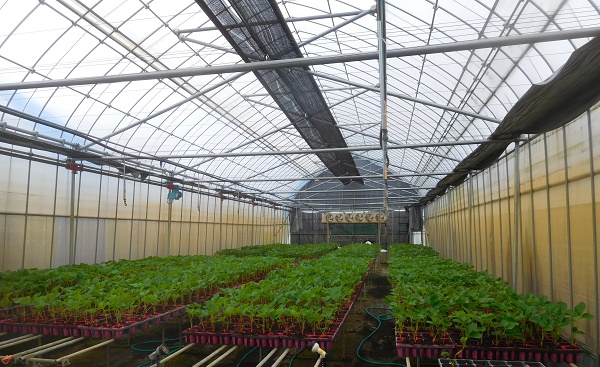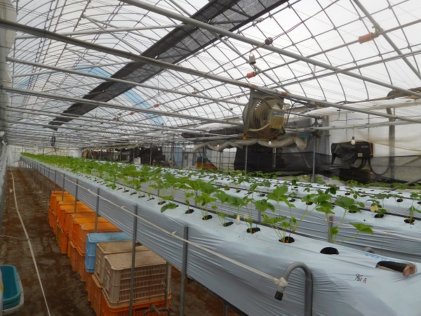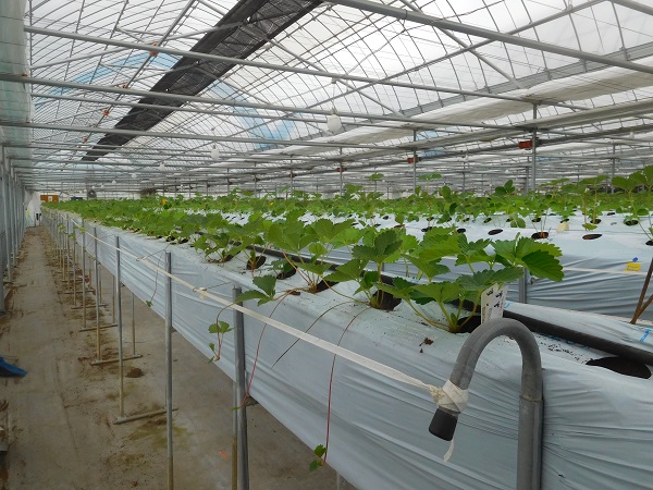 写真6.順路1の章姫。手前の大きな株は、10月13日に定植した夜冷処理の