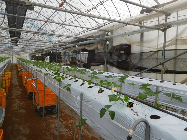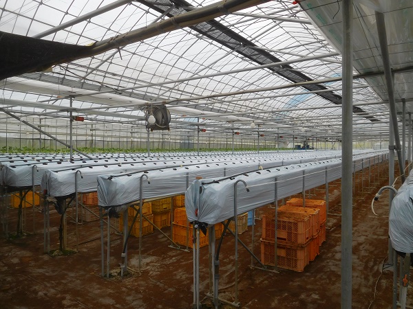 ハウスの広さは、3000㎡あるので、掃き掃除をするのが大変です。
