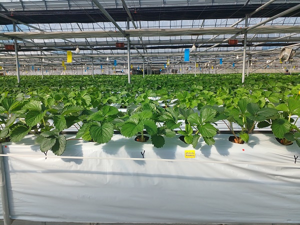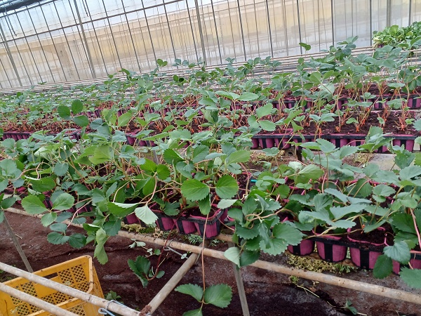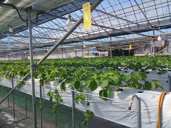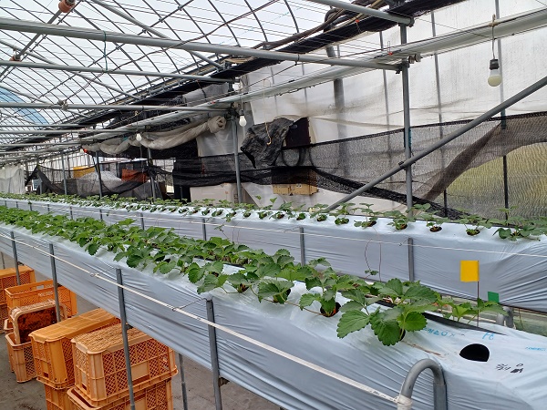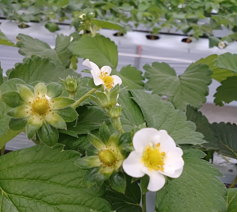 写真7.順路2のかおり野・紅ほっぺ・ホワイトベリー。まだ出蕾は少ないです。