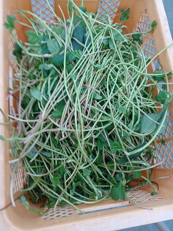 写真4.夜冷処理の章姫。ようやく掃除したときに舞い上がって付いた、ヤシガラが