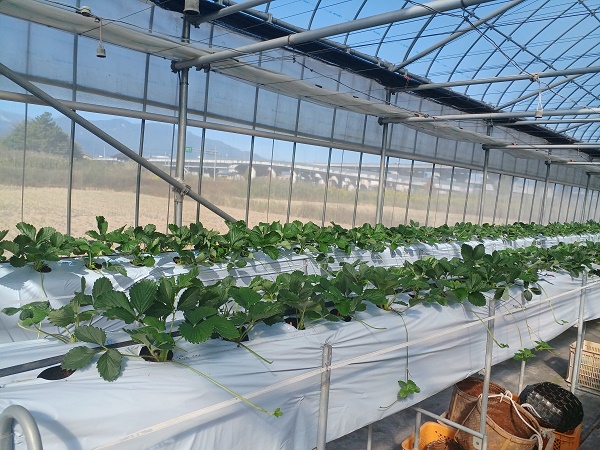 写真2.いちご狩りハウスの株が全体的に大きくなりました。